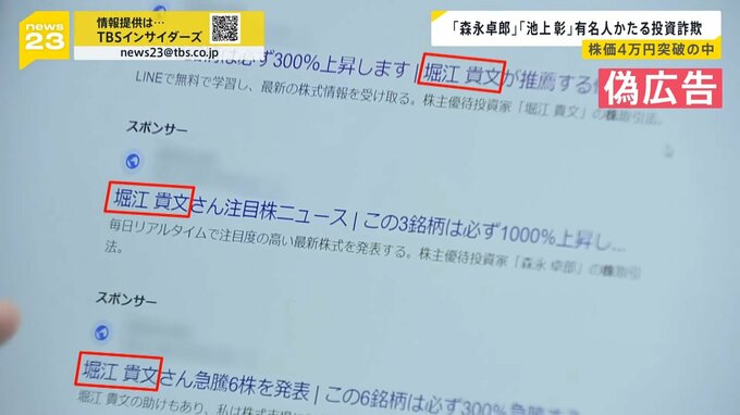 「フェイスブックで、『上がる株を教えます』という堀江貴文さんの広告を見ました」