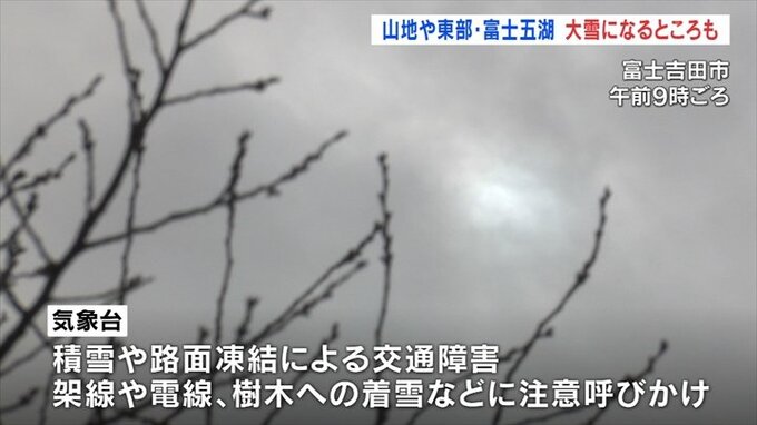 山梨県内はきょう5日からあす6日にかけて山地や東部・富士五湖で大雪になるところがある見込みで、積雪や路面の凍結などに注意が必要です。