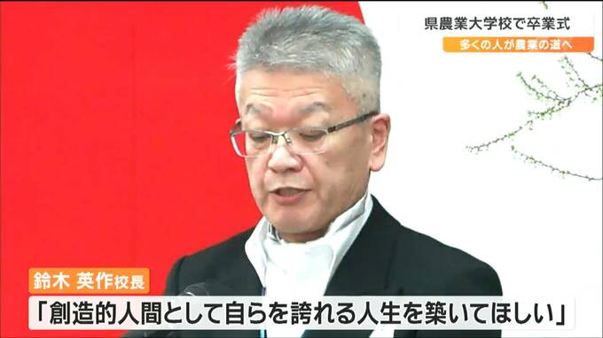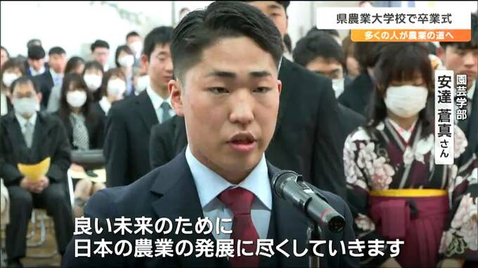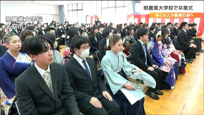 県農業大学校の卒業式には、畜産や園芸学部など4つの学部の卒業生や在校生、保護者が出席しました。