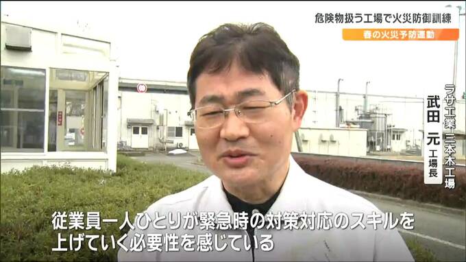 この工場では2022年1月に火災が発生し従業員2人がけがをしていて、訓練は火災時の対応を再確認するため行われました。