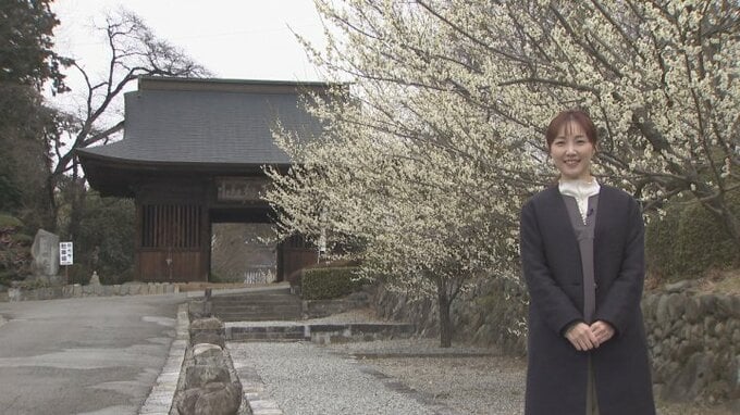 花の寺と呼ばれる甲州市の放光寺でウメの花が見ごろを迎えました。
