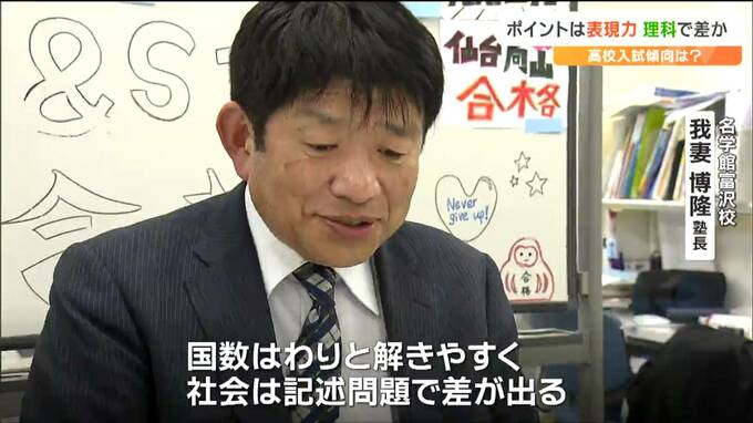 宮城県内の公立高校で5日、入学試験が行われ1万3000人余りの受験生たちが関門に挑みました。今年の試験問題の傾向について仙台市内の学習塾で聞きました。