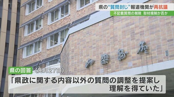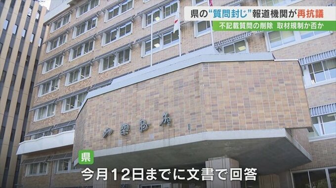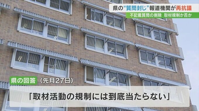 「取材規制には到底当たらない」とした県側の回答に対して、県内の報道機関は「二者択一を迫るような行為を今後しないと約束してほしい」などと改めて抗議と質問の文書を提出しました。
