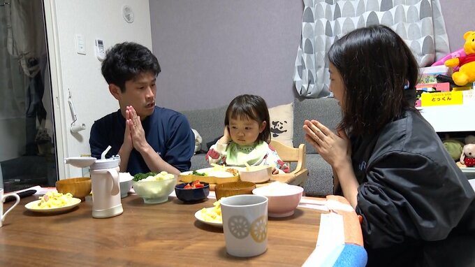 中河原さん夫婦と小暖ちゃん(1歳11ヶ月)は、毎日、家族揃って夕食をとります。。2人にとって育児とは。