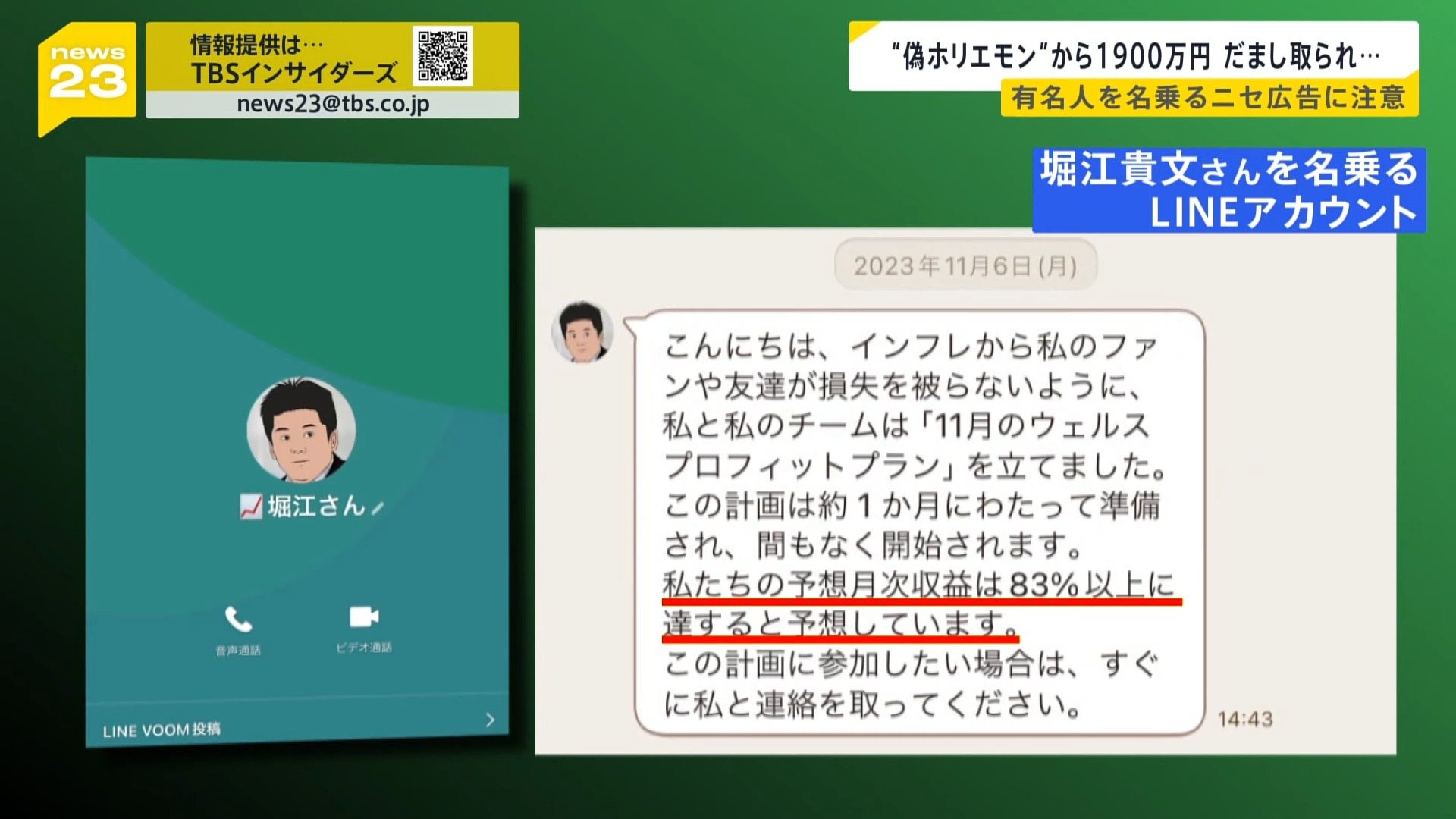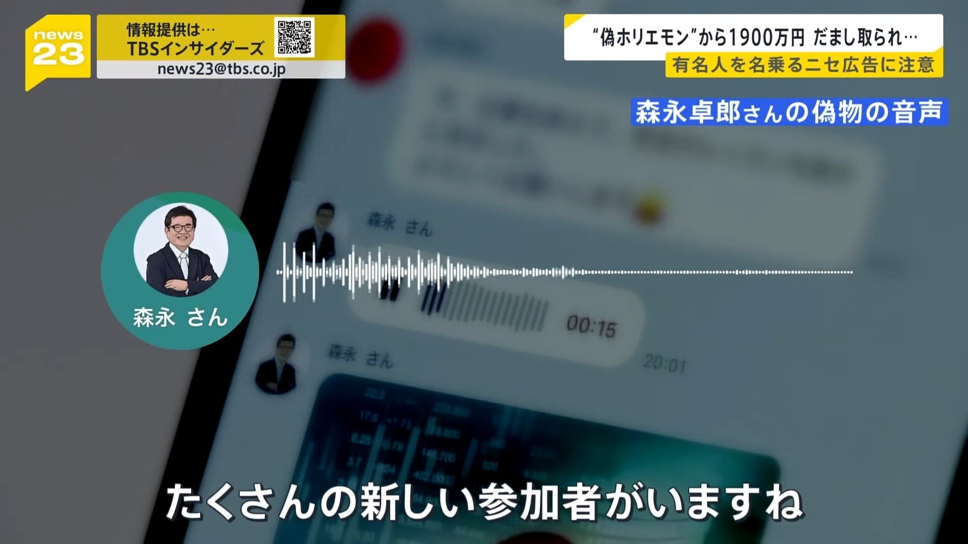 こうした手口は、news23が接触した経済アナリスト・森永卓郎さんの偽アカウントも…