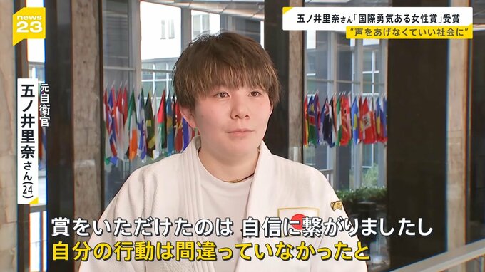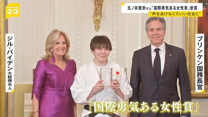 アメリカ政府が選ぶ、今年の「国際勇気ある女性賞」に元自衛官の五ノ井里奈さんが選ばれ、4日にアメリカ・ホワイトハウスで行われた授賞式に出席しました。