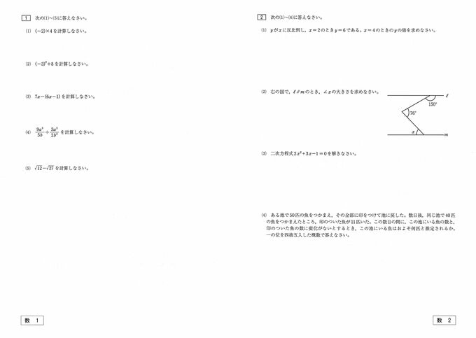 山口県公立高校入試『数学』試験問題・解答(令和6年度・2024年度)