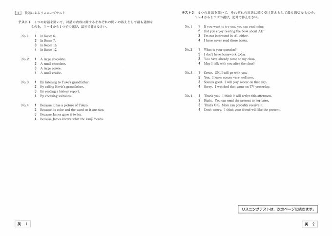 山口県公立高校入試『英語』試験問題・解答(令和6年度・2024年度)