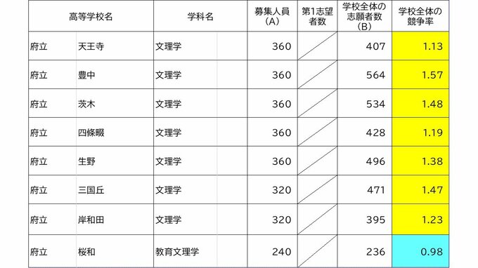 【確定値】大阪府公立高校入試2024 志願倍率は北野1.28倍 豊中1.57倍 三国丘1.47倍(令和6年度高校受験の出願締め切り 全校掲載) 毎日放送 2024年3月7日(木) 20:56 国内 学校別の倍率(確定値) 天王寺1.13倍 三国丘1.47倍