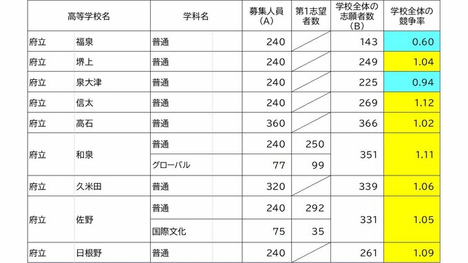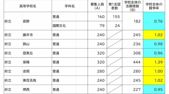 【確定値】大阪府公立高校入試2024 志願倍率は北野1.28倍 豊中1.57倍 三国丘1.47倍(令和6年度高校受験の出願締め切り 全校掲載) 毎日放送 2024年3月7日(木) 20:56 国内 学校別の倍率(確定値) 泉陽1.39倍 信太1.12倍