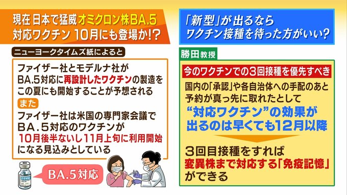 ーー「新型が出るならそれまでワクチンを待った方がいいのではないか」という意見もあるかと思います。勝田先生によりますと、今のワクチンで「3回目接種」を優先すべきだということです。国内の承認や各自治体への手配の後、予約が真っ先に取られたとして、対応するワクチンの効果が出るのは早くても12月以降となりそうです。3回目接種をすれば変異株まで対応する免疫記憶ができるということでですね?