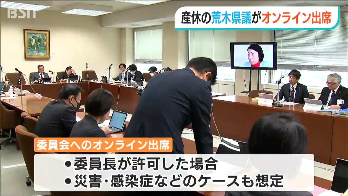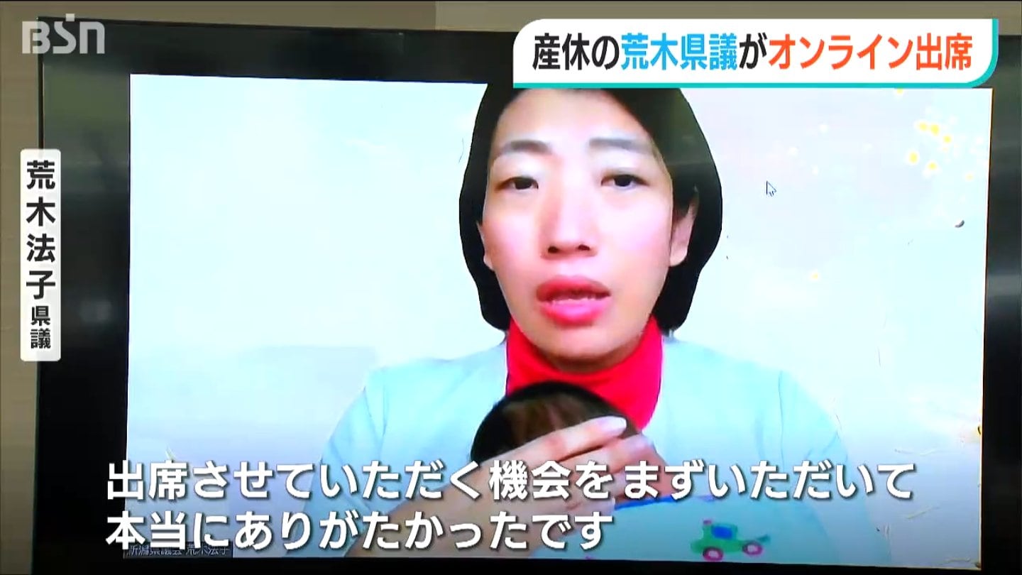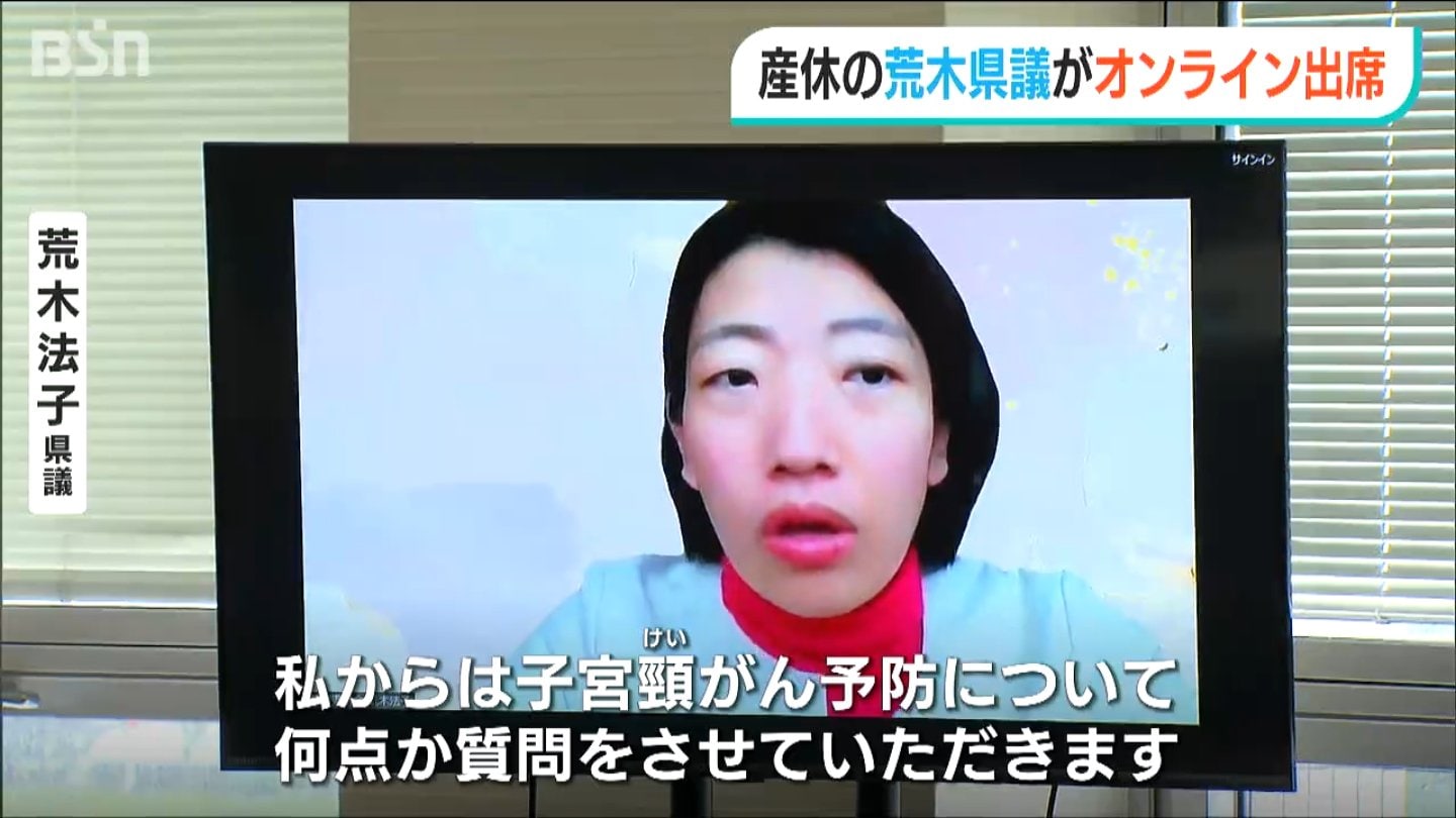 6日に開かれた常任委員会で、県議会初の『産休』を取得している荒木法子 県議がオンラインで出席しました。