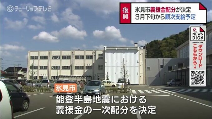 富山県氷見市に寄せられた能登半島地震の義援金の一次配分が決定しました。義援金は氷見市内で住宅被害にあった被災者にあてられ、1世帯当たり全壊が10万円、大規模半壊が7万円、中規模半壊が5万円、半壊が2万円、…
