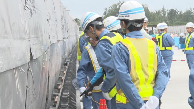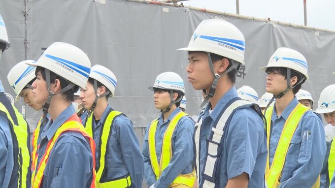 これは普段、立ち入ることができない工事現場を見学することで、建設業への関心を高めてもらおうと行われたもので、沖縄工業高校土木科のおよそ40人が参加しました。