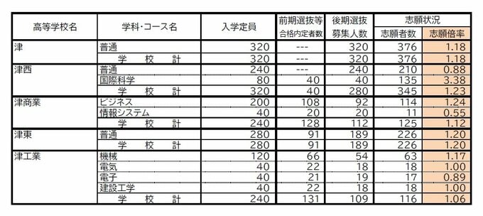 三重県公立高校入試2024【最終志願倍率】 後期選抜の出願状況 普通科は桑名1.09倍 四日市0.82倍 津1.18倍 伊勢0.87倍