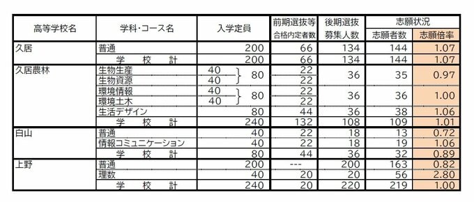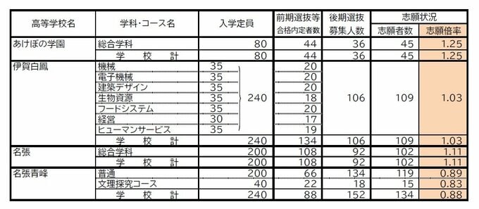 三重県公立高校入試2024【最終志願倍率】 後期選抜の出願状況 普通科は桑名1.09倍 四日市0.82倍 津1.18倍 伊勢0.87倍