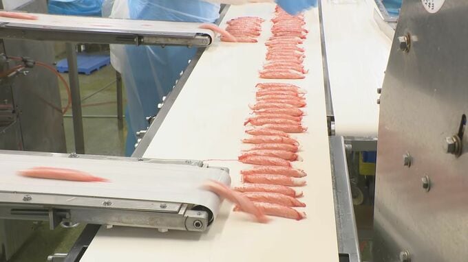 サラダや酢の物などどんな料理にも使えると人気のカニカマ「ロイヤルカリブ」。七尾市の練り物メーカー・スギヨは、市内3つの工場で天井や壁の一部がはがれたり上下水道の配管が壊れるなどの被害がありました。断水の影響で製造の停止が続いていましたが、カニカマをメインに製造する工場を優先的に復旧させ、先月29日、2か月ぶりに製造を再開しました。