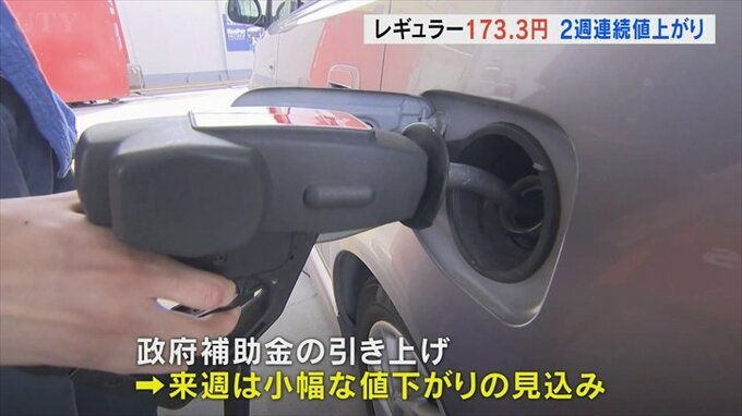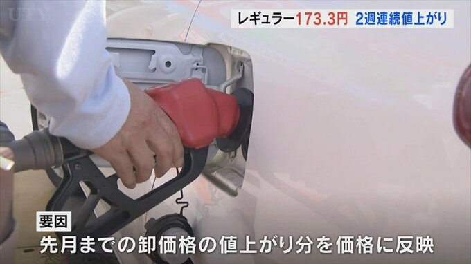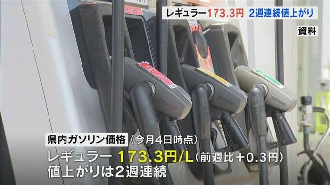 資源エネルギー庁によりますと3月4日時点の県内のレギュラーガソリンの平均小売価格は1Lあたり173.3円で前の週より0.3円値上がりしました。値上がりは2週連続です。