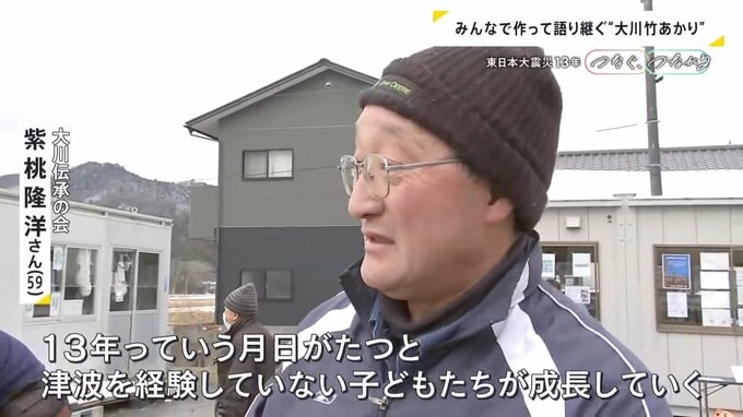紫桃さんが「大川竹あかり」を始めたのは、地域で震災を伝えていく大切さを感じたからだといいます。