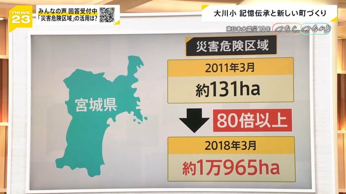 実は宮城県全体で「災害危険区域」の面積は、震災発生当時に比べて80倍以上に増えている。なかなか戻ってこられない状況です。