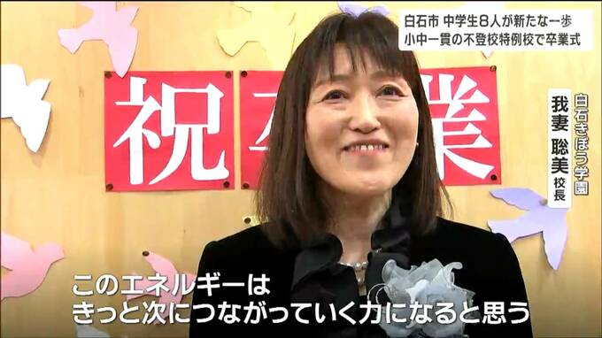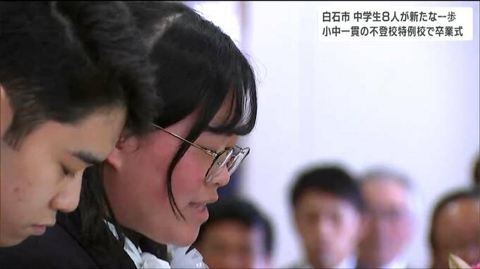 2023年4月、宮城県白石市に開校した小中一貫の不登校特例校「白石きぼう学園」で7日初めての卒業式が行われ、中学生8人が新たな一歩を踏み出しました。