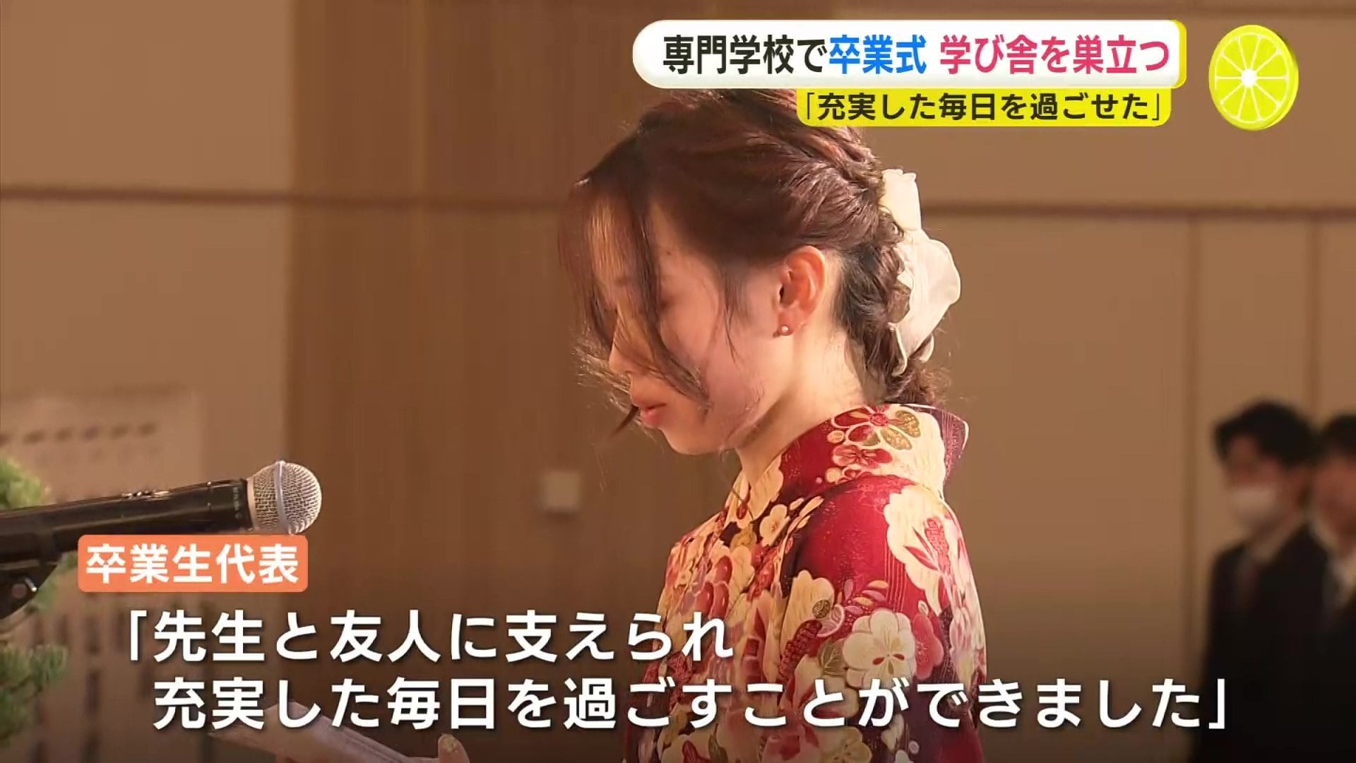 広島市の大手専門学校で7日、卒業式があり、学生たちが学び舎を巣立っていきました。