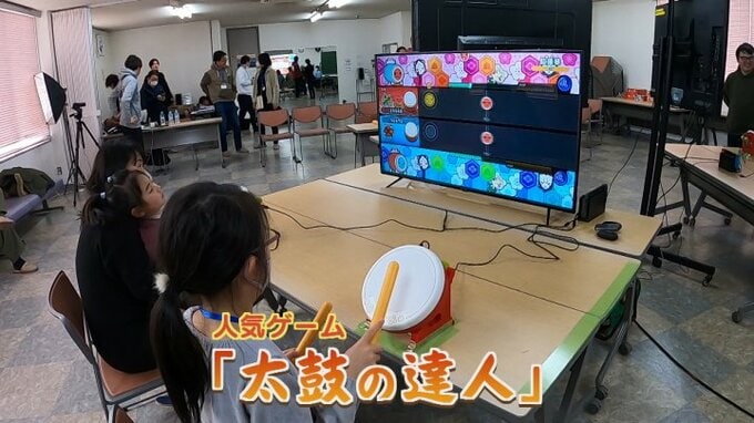 リズムに合わせて太鼓を叩く人気ゲーム「太鼓の達人」です。