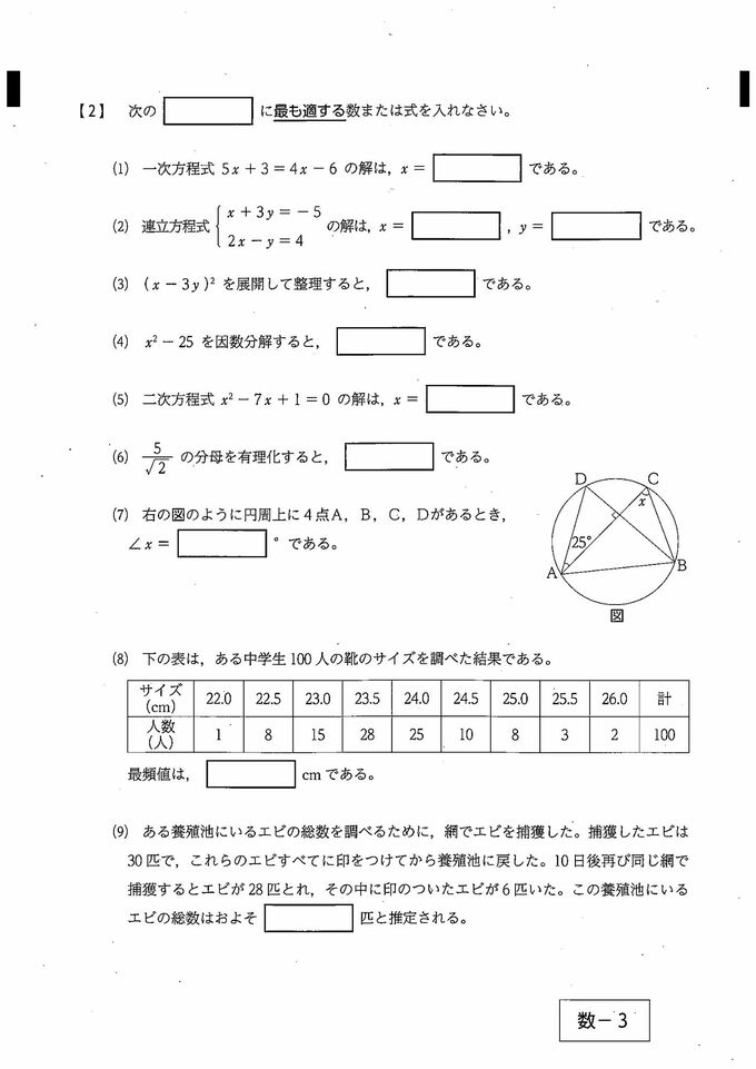 3. 2024年度 沖縄県立高校入試 解答【数学問題・正答速報】全問掲載