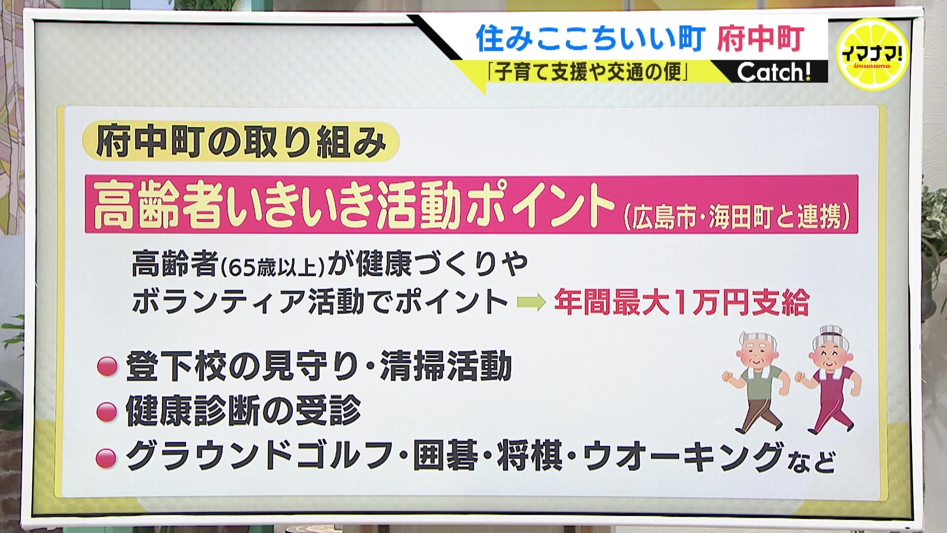 さらにお年寄りにもうれしいシステムもあります。「高齢者いきいき活動ポイント」といって広島市・海田町と連携し、お年寄りが健康作りやボランティアを行なうとポイントがたまり、年間最大1万円もらえるというものです。