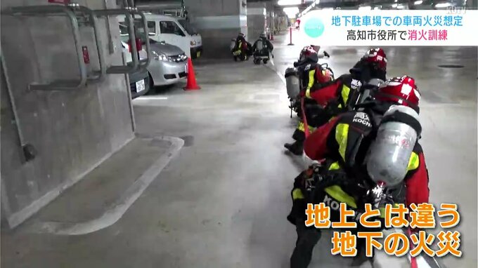 3月7日は消防記念日です。高知市では地下駐車場で車両火災が起きたことを想定した訓練が行われました。春の全国火災予防運動が最終日を迎える中、高知市役所の地下駐車場で行われた訓練には、高知市の消防隊員と職…
