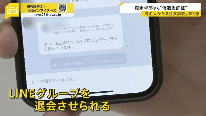 「先ほど、堀江さんや森永さんの偽アカウントに電話をかけましたが、『Mr.モリタク』にLINEグループを退会させられてしまいました」
