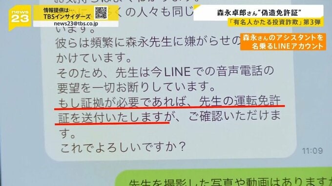 「アシスタントに、森永卓郎さん本人である証拠を見せてほしいと連絡をしました。すると、こう返ってきました。『もし証拠が必要であれば、先生の運転免許証を送付いたします』と」