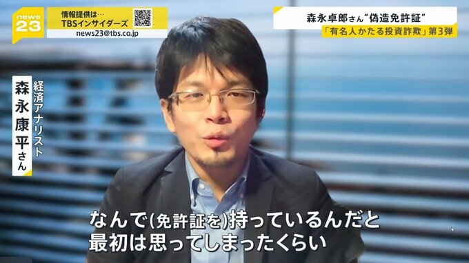 森永康平さん「(父をかたる偽造免許証に)家族以外は気づけないのでは」
