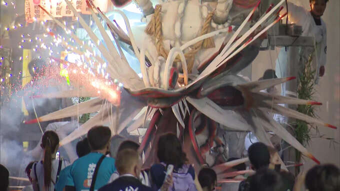 福岡県大牟田市では、夏の風物詩「おおむた『大蛇山(だいじゃやま)』まつり」が、3年ぶりに開催されました。大牟田市では24日、長さ10メートル、高さ5メートルの大蛇の山車6基が集まり、おおむた「大…