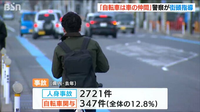 警察によりますと県内で去年1年間に起きた人身事故は2721件で、そのうち自転車の事故は12.8パーセントにあたる347件でした。