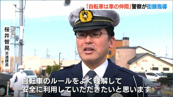 【新潟署 桜井智晃 交通課長】「自転車は車の仲間です。自転車のルールをよく理解して安全に利用していただきたいと思います。また事故に遭った時に備えてヘルメットの着用をお願いします」