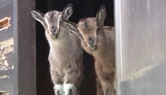 駆け回る2頭のヤギの赤ちゃん。須坂市動物園でトカラヤギのメスの双子が誕生し、すくすくと育っています。2月24日に生まれた双子の赤ちゃん。足首など全体的に白っぽく、やんちゃなのが双子のお姉ちゃん。おでこが…
