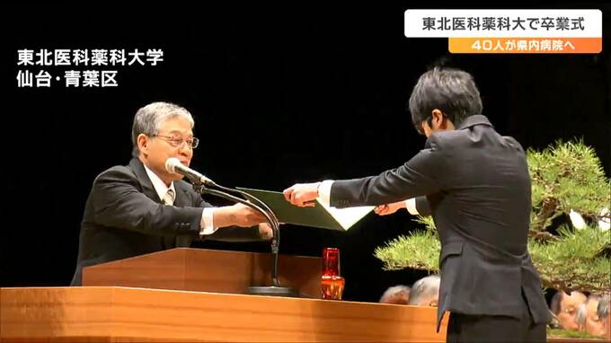 東北医科薬科大学では、399人が巣立ちの日を迎え、各学部の代表に卒業証書と学位記が授与されました。