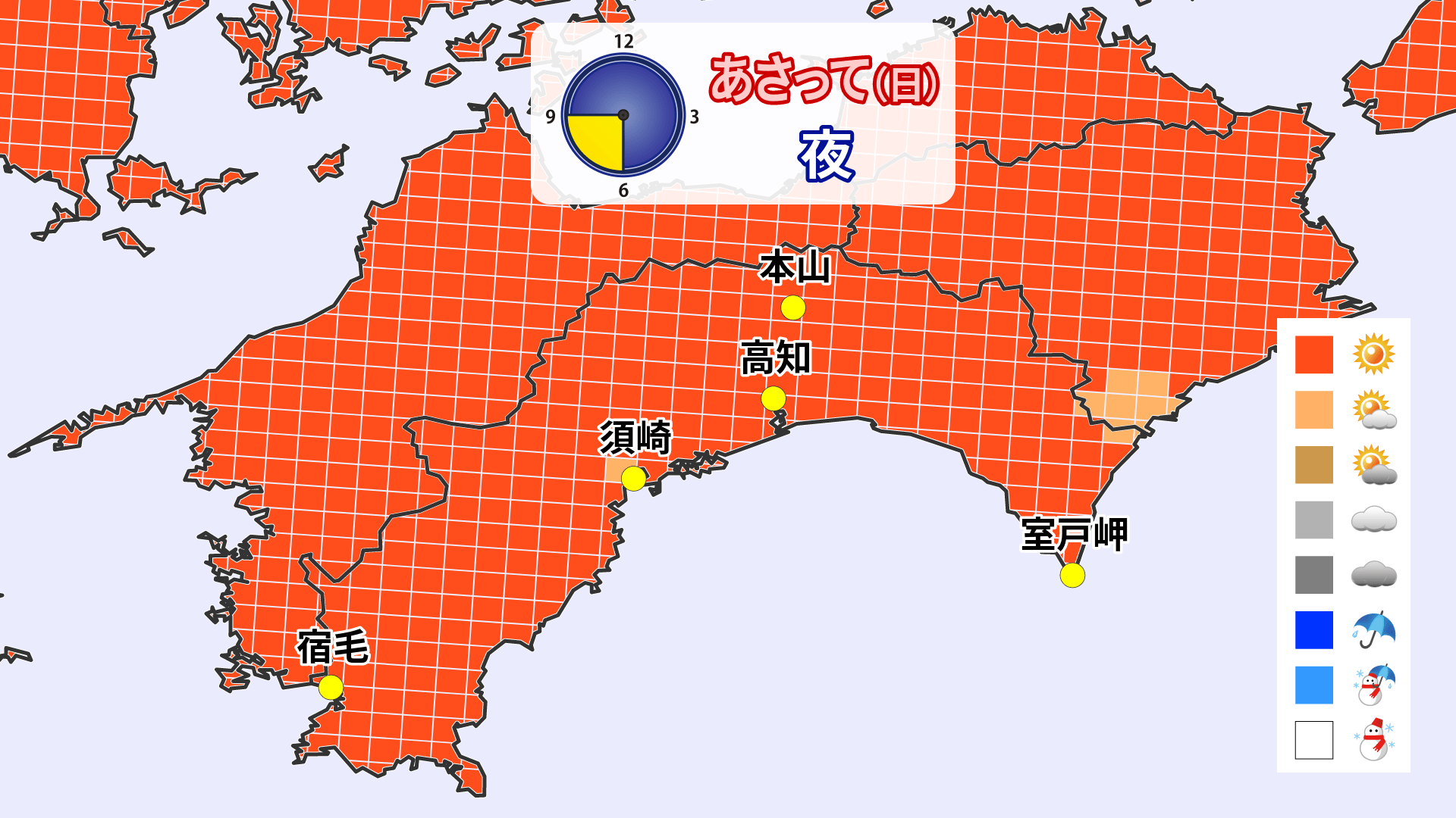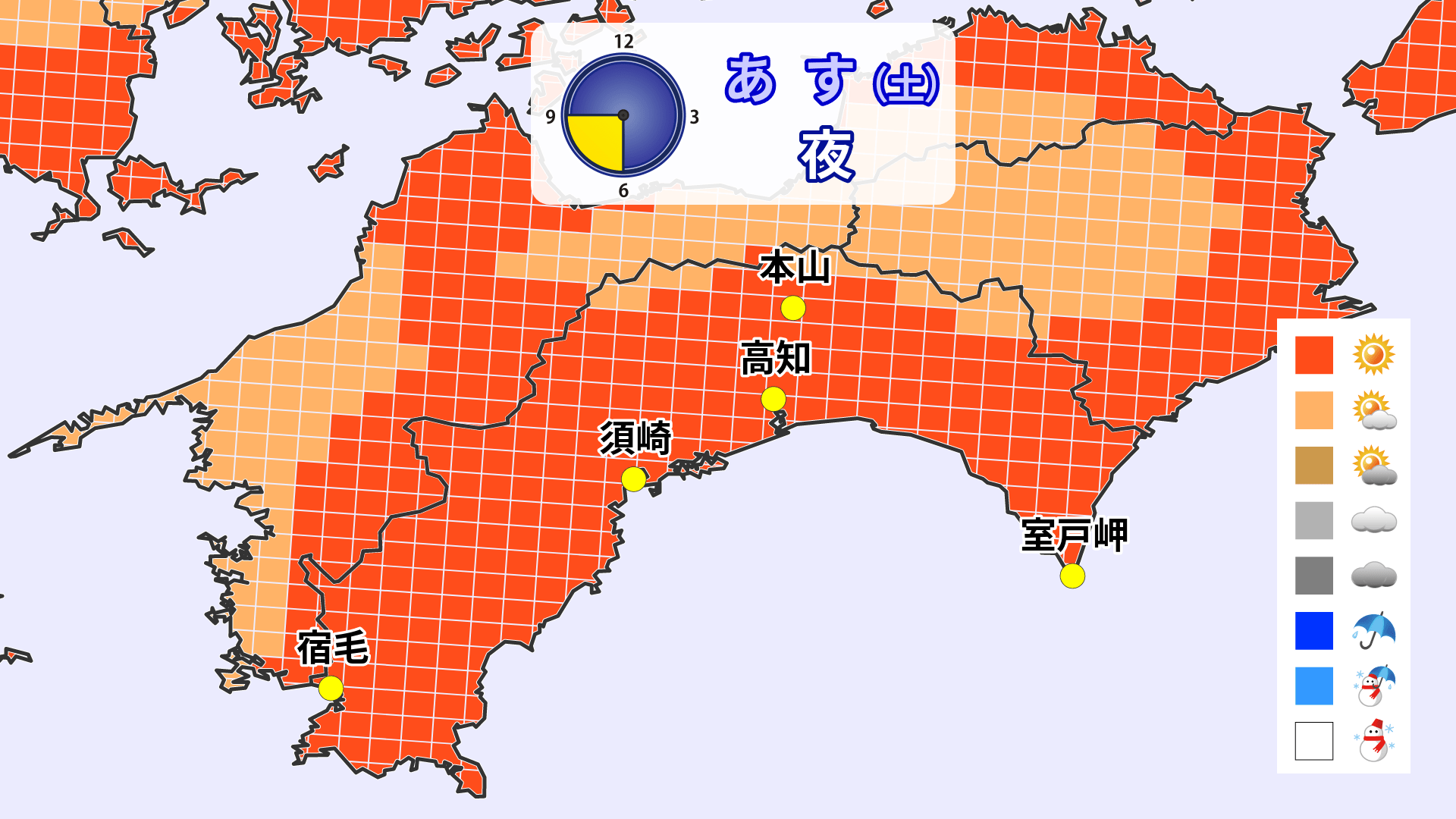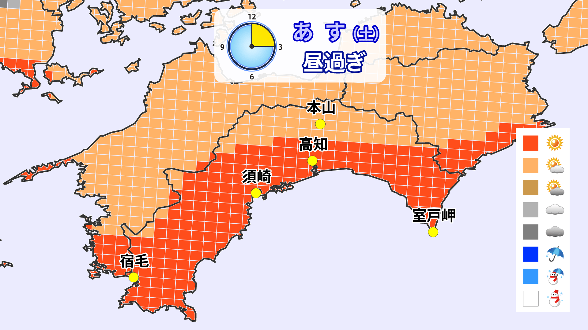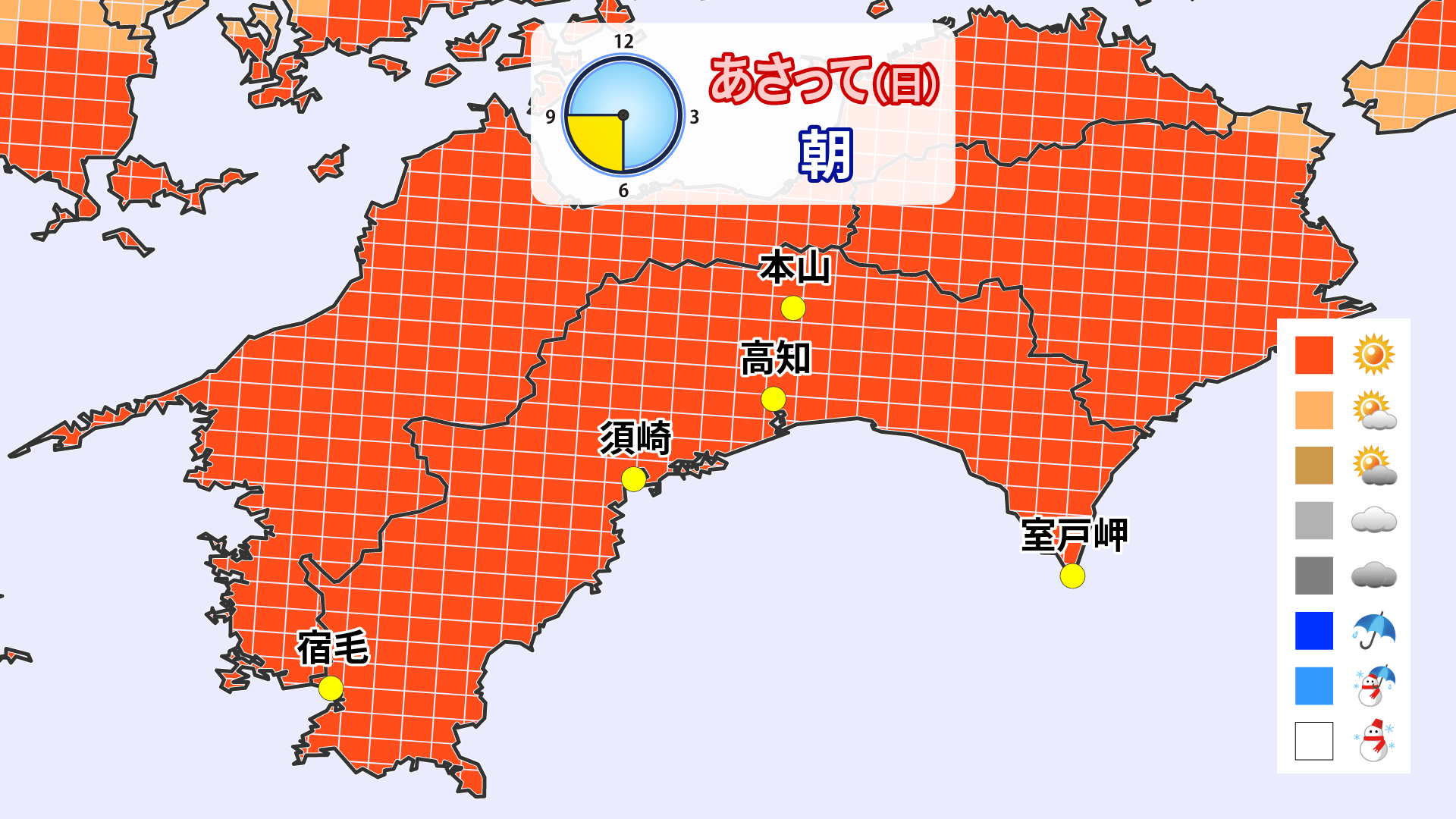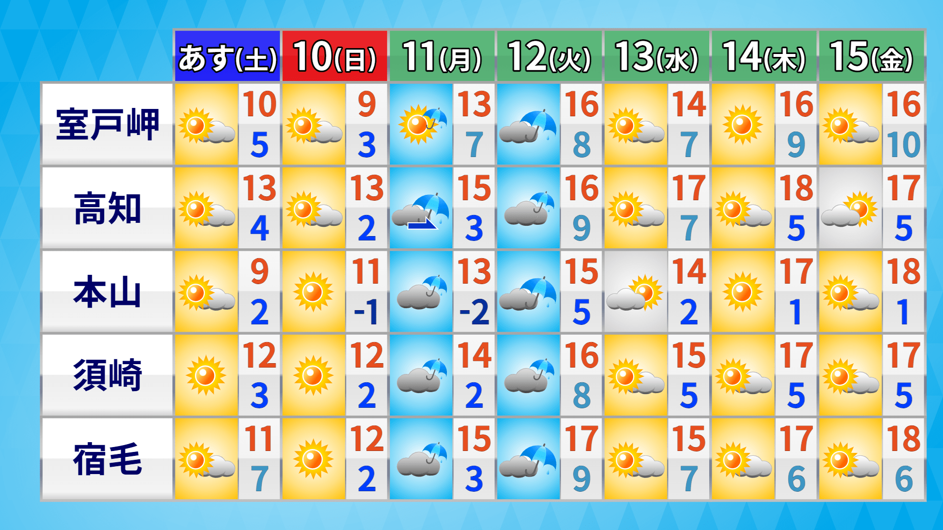 9日、10日の土日は高知県内全域で青空が広がり、お出かけ日和となるでしょう。ただ、寒気が流れ込む影響で気温は上がらず、特に日曜日の朝は各地で冷え込みが強くなりそうです。