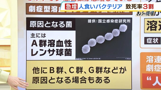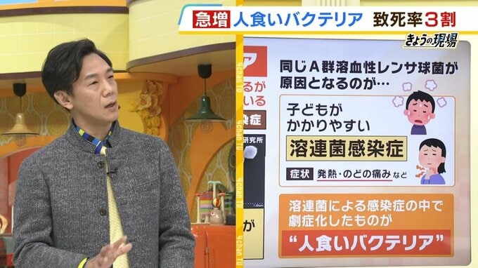 (城戸教授)基本的には同じ一つのバクテリアが感染すればそれだけで劇症型が起きるわけではないので、様々な要因があるんですけど、一般的には、子供は比較的、劇症型にはなりにくい。基本的には高齢者というか、年齢が上の人の病気で、最近のトレンドとしては、50歳未満が比較的増えてきている状況です。