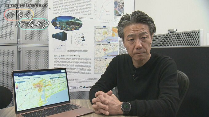そう説明するのは東北大の越村俊一教授(52)だ。「リアルタイム津波浸水被害予測システム」というこのシステム、地震が発生するとマグニチュードや震源の位置、深さ、地殻変動のデータを自動で取り込み、東北大学にあるスーパーコンピュータが計算をはじめる。
