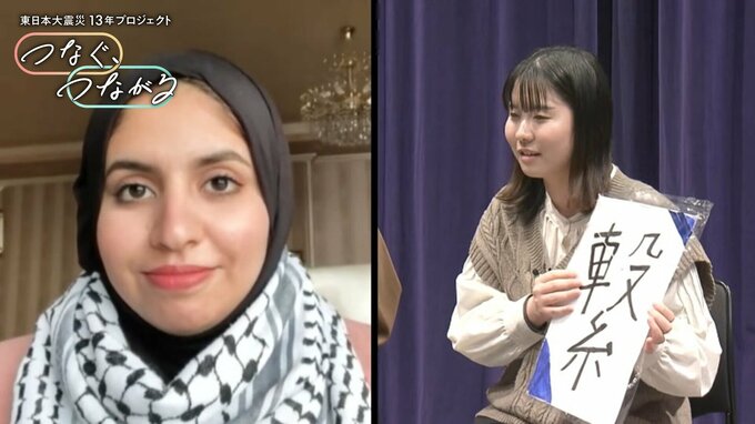 「この凧は、先月の1月に揚げた凧です。どうか日本で応援している人たちを忘れないでほしいっていう思いをこめて、『繋がり』っていう漢字を書きました」