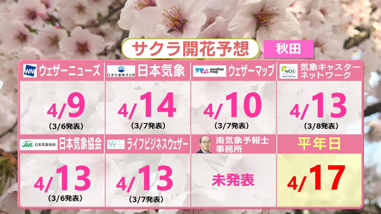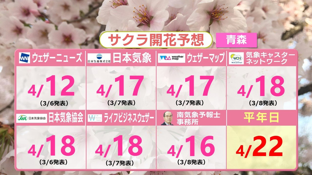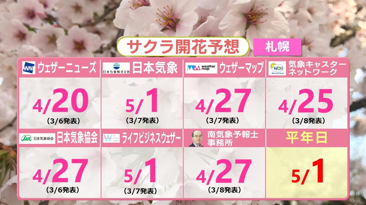 東北・北海道地方 各社の開花予想 札幌でも4月中に開花か