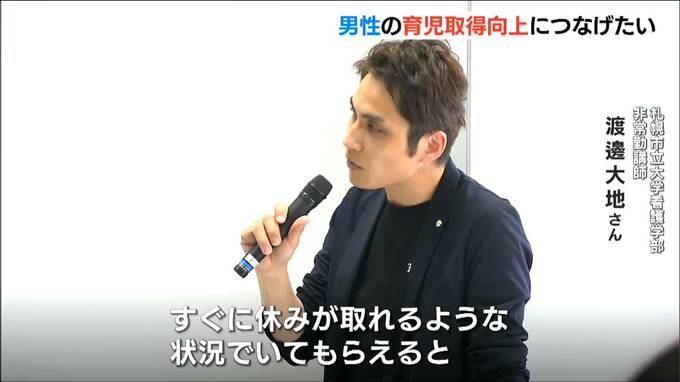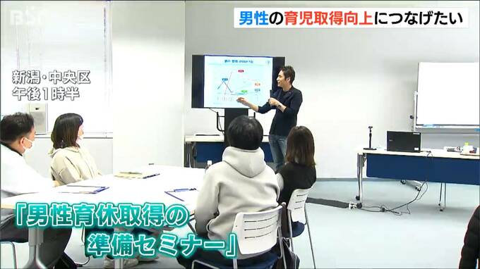 10日、男性の育児休業を促進しようと新潟市でセミナーが開かれ、参加者が取得の重要性を共有しました。