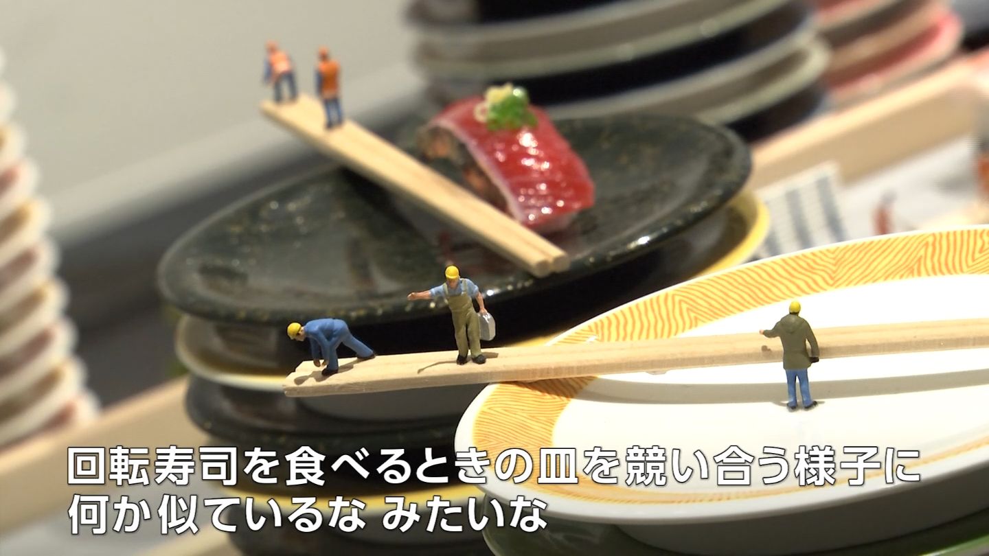 「この作品を思いついたのが、よく回転寿司に家族で行ったりするんですけど、例えば大都市圏とかに行くと『ビルがどんどん競い合って縦に伸びていく様子』っていうのも、『回転寿司を食べる時の皿を競い合う様子』になんか似ているな、みたいな」