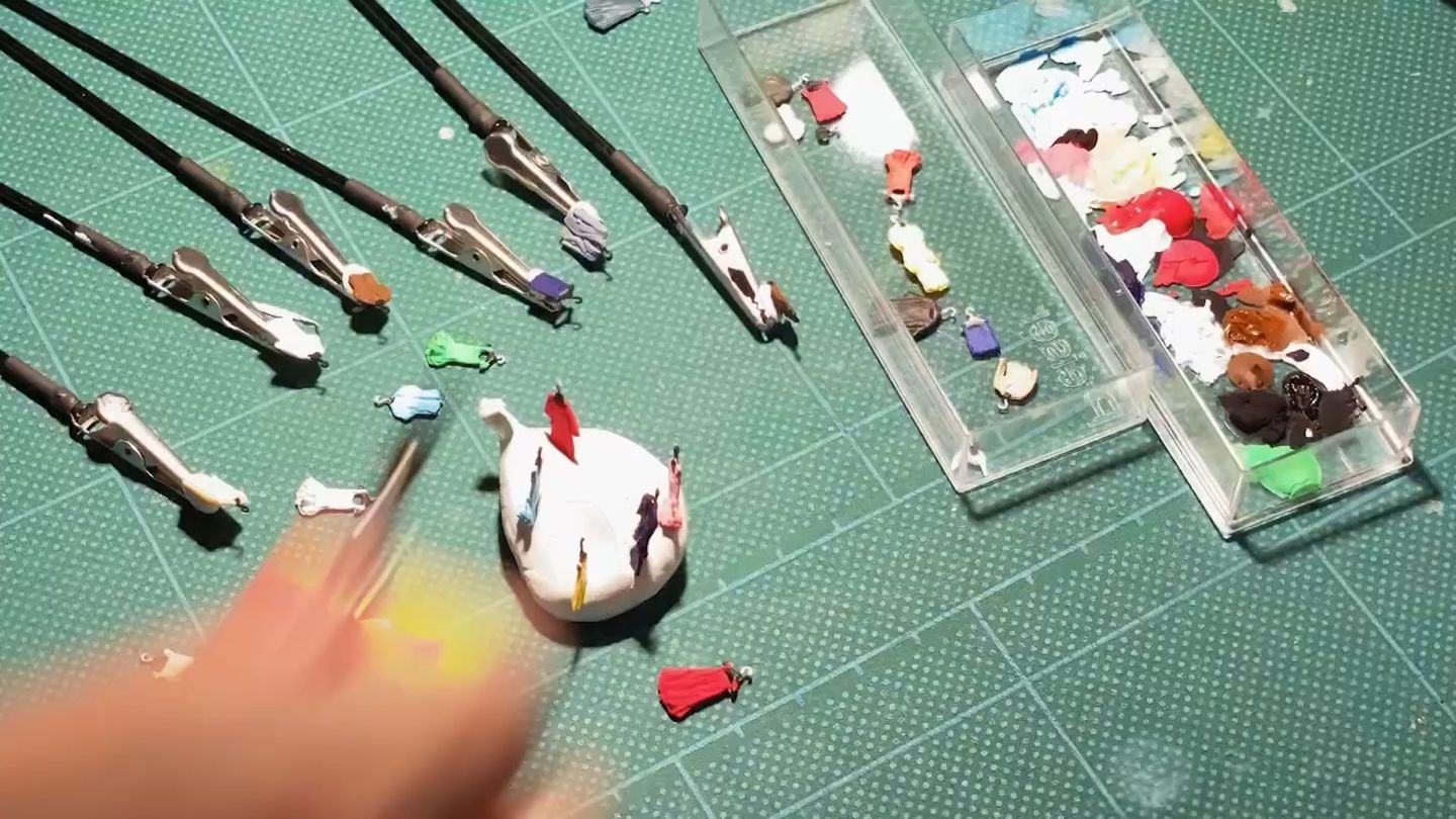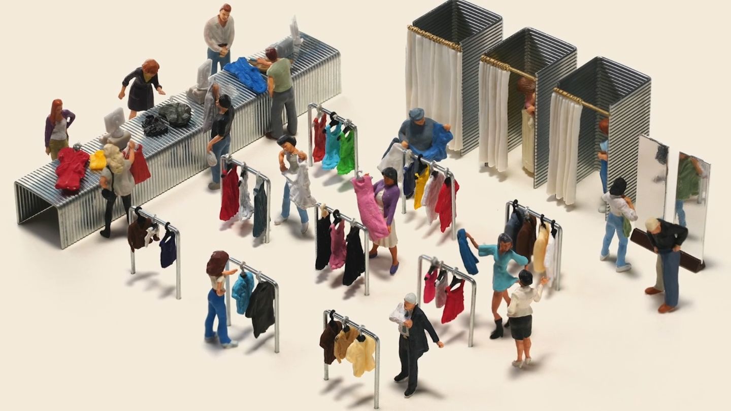 人々が腰掛けるのは、椅子に見立てたクリップです。