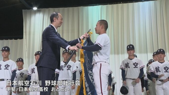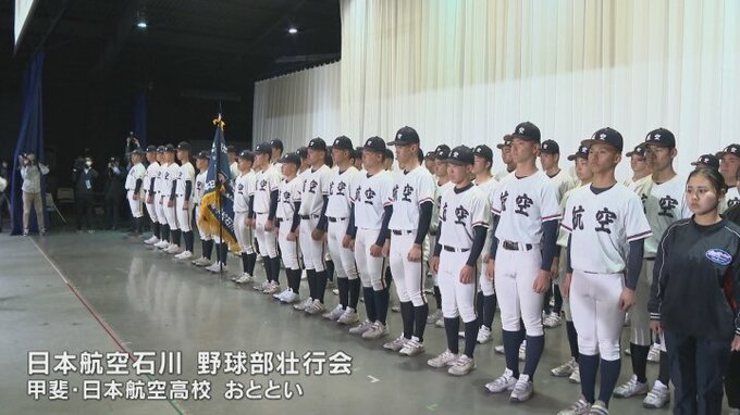 一方、甲斐市の日本航空高校では9日、地震の影響で生活の拠点を山梨に移した日本航空高校石川の野球部の壮行会が行われました。