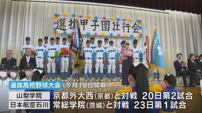 大会は3月18日に開幕し、山梨学院は大会3日目の第2試合で京都外大西と対戦し、航空石川は6日目、23日の第1試合で茨城の常総学院と対戦します。