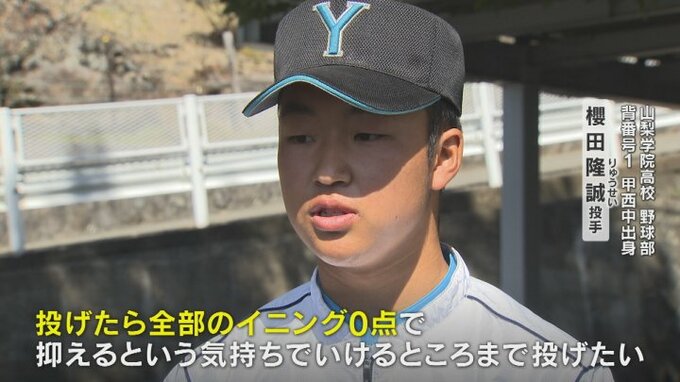 山梨学院高校野球部 背番号1 甲西中出身 櫻田隆誠投手: