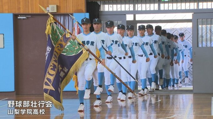 大会2連覇を目指す山梨学院高校野球部の壮行会が行われました。